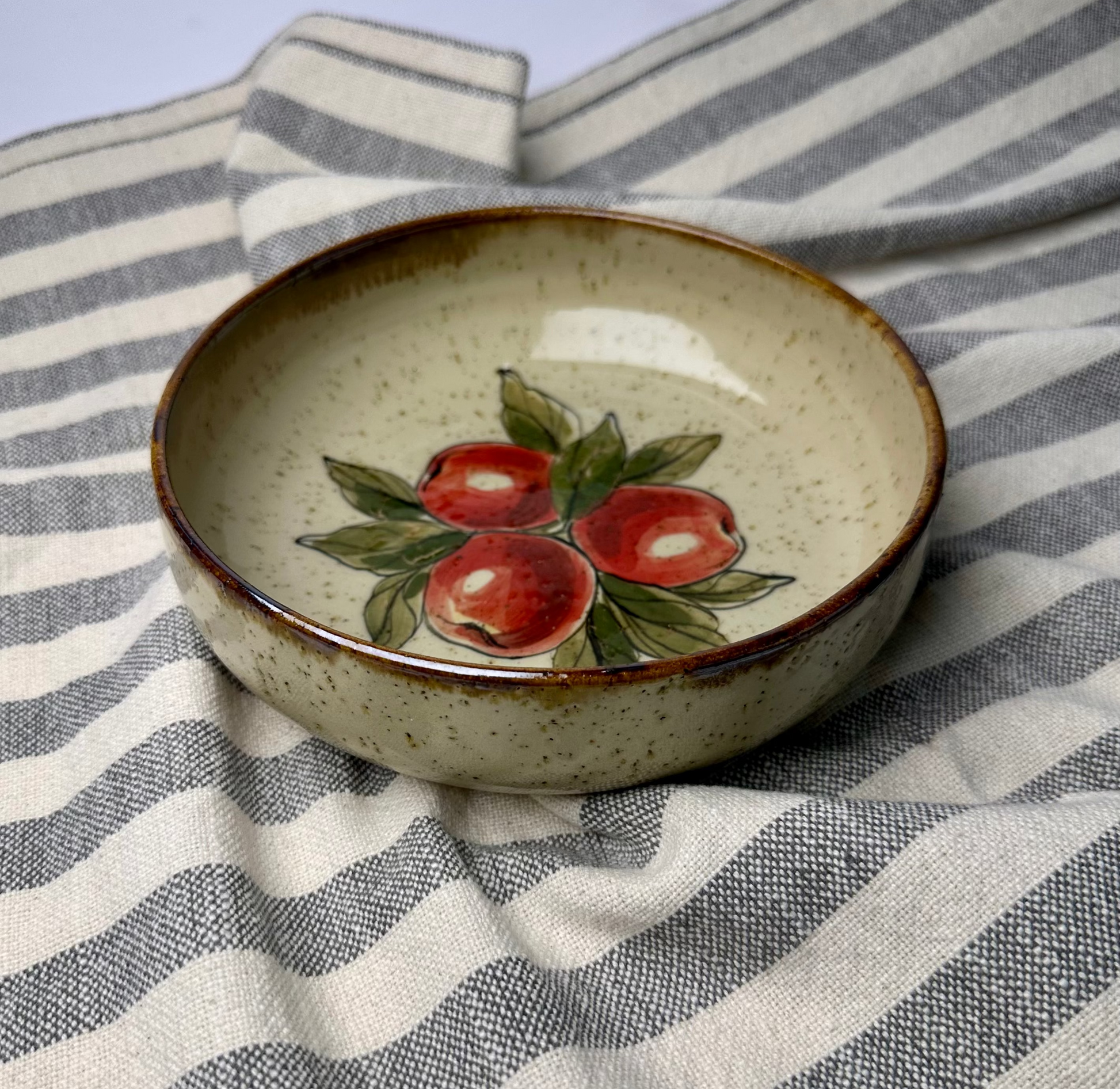 Ceramiczna miska, ręcznie toczona na kole garncarskim i ręcznie malowana.
